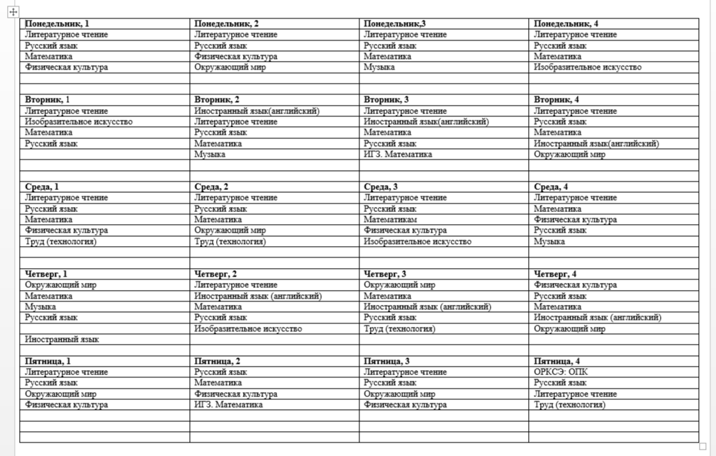 Расписание уроковРасписание уроков Начальное общее образование 2025 - 2026 учебный год