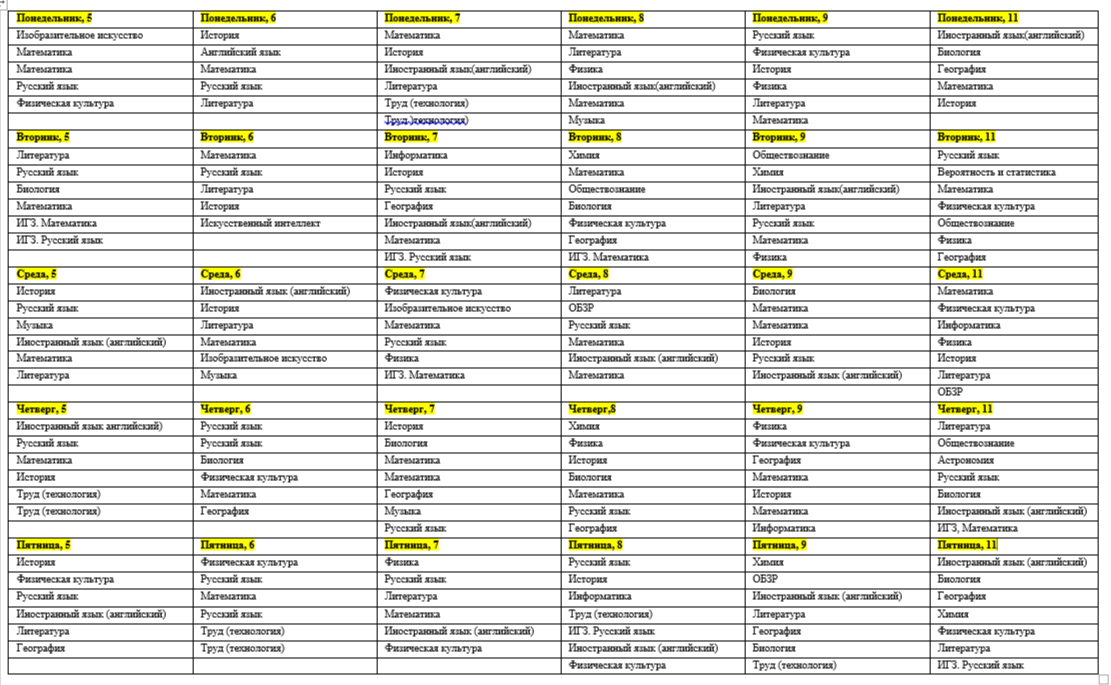 Расписание уроков Основное общее и среднее общее образование 2025 - 2026 учебный год